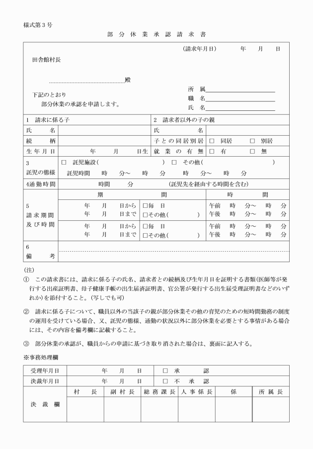 第14条 部分休業の承認の請求は、部分休業承認請求書(様式第3号)により行うものとする。