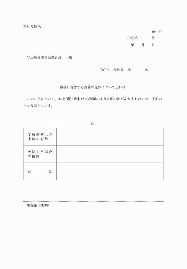 16 | 職務に専念する義務の免除願(具申) | 2 |